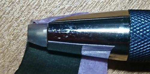 ※BRFV-10EFを少しカットして長さを調整。バネ留め部にセロテープを巻いている。