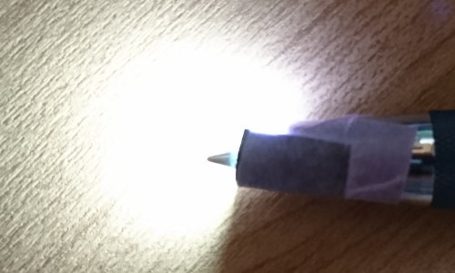 専用ラバーで擦ると筆跡が消えるボールペン。筆跡が消えるのは温度変化によって色が変わるインクを使用しているため。冷やすと筆跡が復活するし、温めると筆跡が消える。