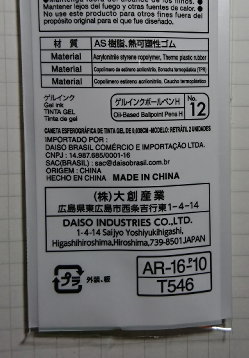 ↑ダイソーは商品の入れ替えが激しく、将来どのボールペンの情報なのか分かりづらくなる可能性があるので、画像情報を掲載しておくことにした。パッケージは0.38mmのもの。